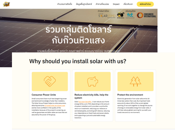 Thailand Consumers Council launched its one-stop shop this World Consumer Rights Day, providing people in Thailand with a central hub to support their shift to renewable energy. At the heart of the platform is a collective solar energy “Light Hungry Gang” campaign, which helps consumers band together to access solar energy technology at more affordable prices. Trusted information, a cost calculator, and practical tools are some of the ways this will promote solar adoption among households and small businesses across the country.